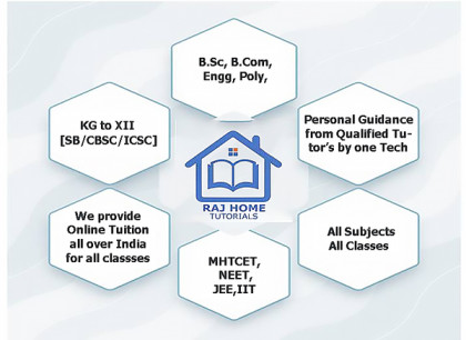 Raj Home Tutorials is an Institute Provides well Experienced and result oriented teachers (Home tutors) to teach students at Students Residence. Tutors are Available for KG to X, XI-XII, All Boards, JEE, NEET, MHTCET, Engineering, Polytechnic, B.sc, B.com, BA, BBA, BCA, BCCA, MBA, CA, BANKING, All Classes All Subjects.